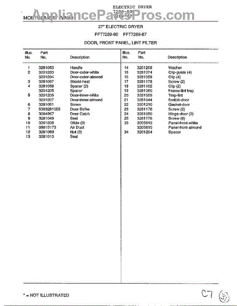 Parts for Frigidaire 7289-80: Door, Front Panel, Lint Filter Page 2 Parts