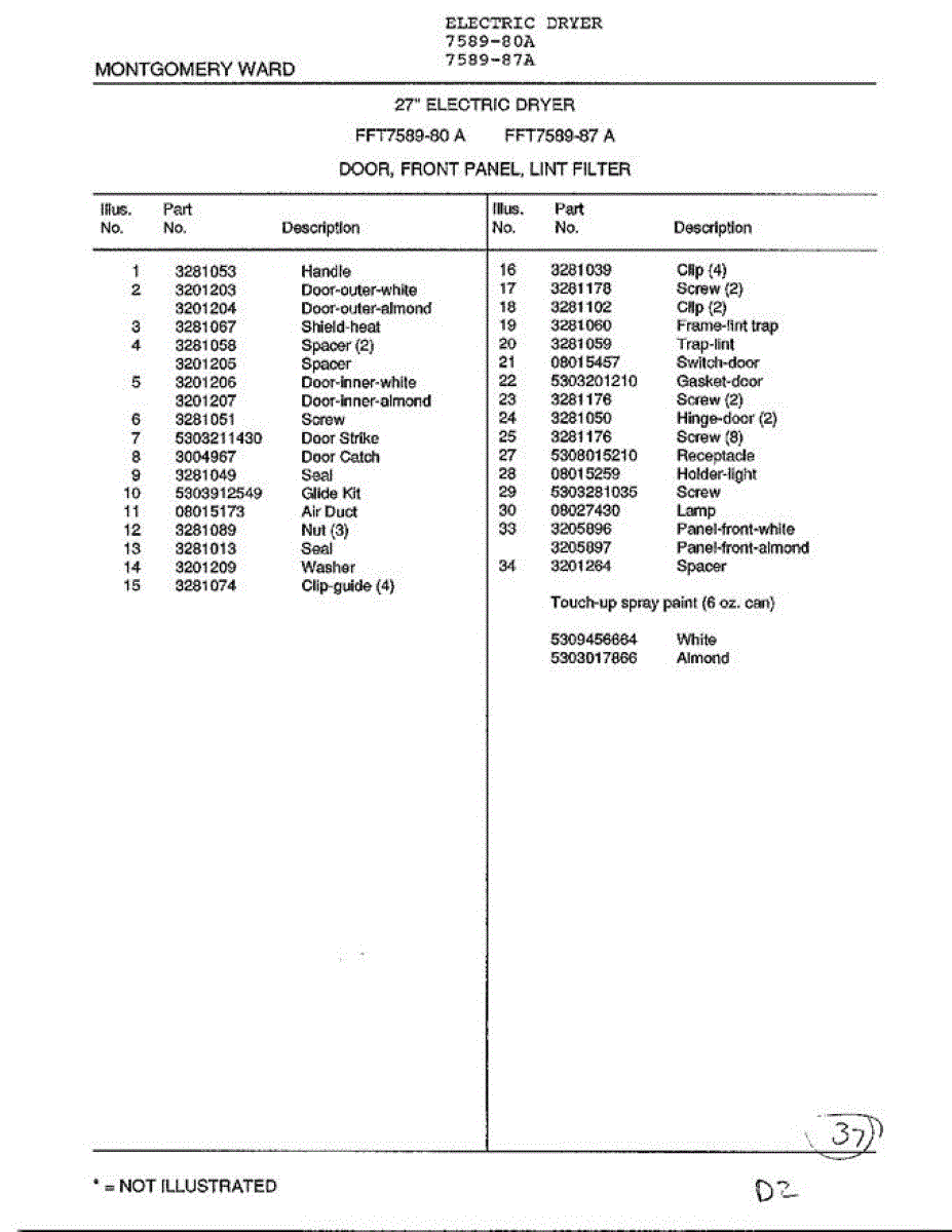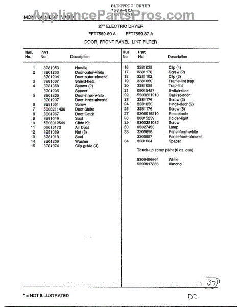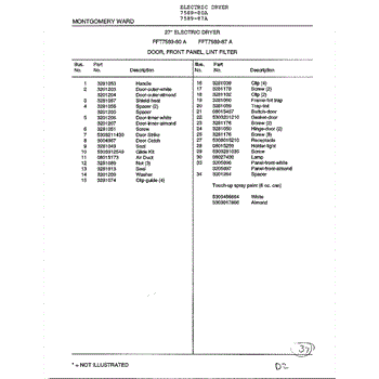 Parts for Frigidaire 7589-87A: Door, Front Panel, Lint Filter Page 2 Parts