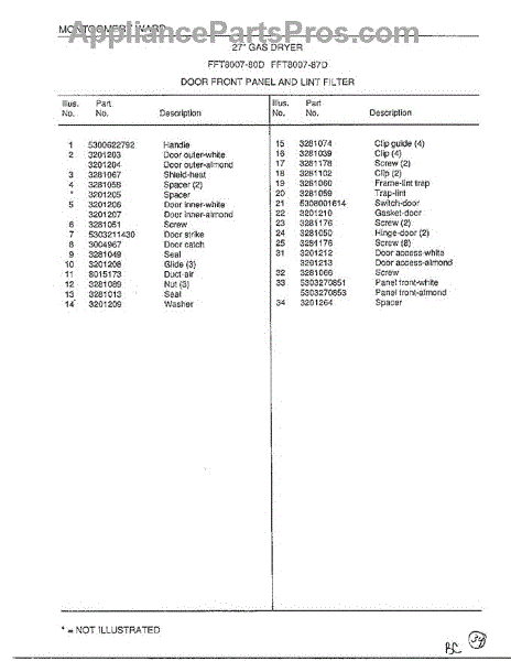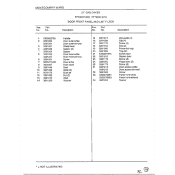 Parts for Frigidaire 8007-87D: Door Front Panel / Lint Filter Page 2 Parts