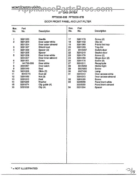 Parts for Frigidaire 8338B: Door Front Panel And Lint Filter Page 2 Parts