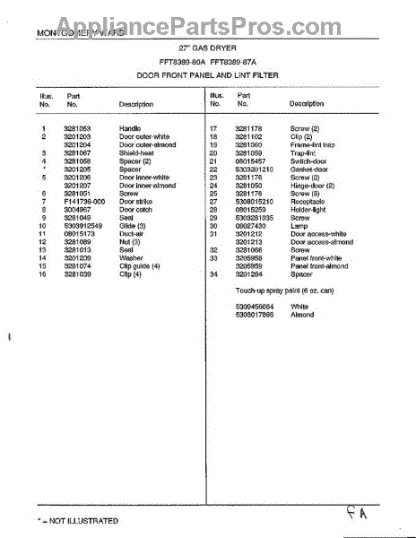 Parts for Frigidaire 8389-87A: Door Front Panel And Lint Filter Page 2 Parts
