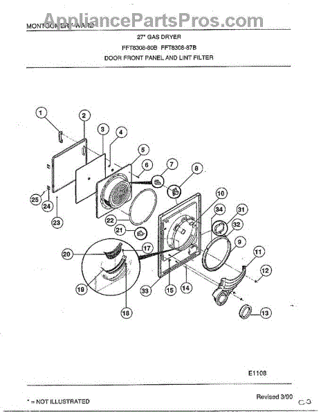 Parts for Frigidaire 7308B: Door Front Panel And Lint Filter Parts