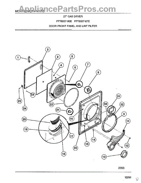 Parts for Frigidaire 8007-80D: Door Front Panel And Lint Filter Parts