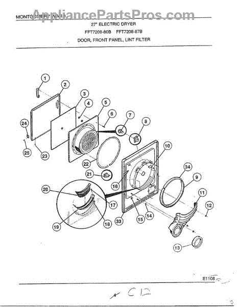 Parts for Frigidaire 7208B: Door / Front Panel / Lint Filter Parts