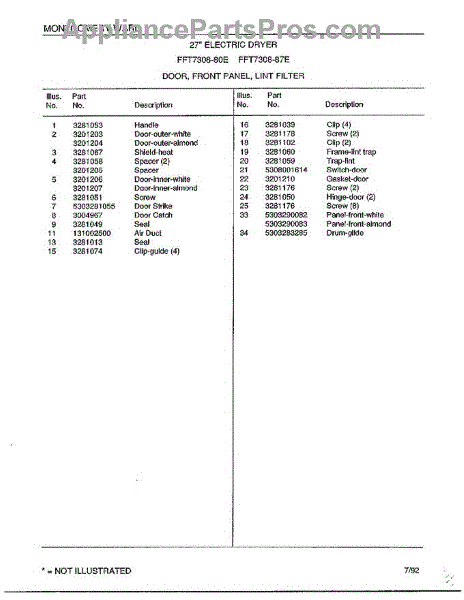 The Dryer Seal is an OEM replacment part for Frigidaire dryers. It is located at the doorway opening where the drum rotates and helps prevent lint, moisture, and heat from escaping. The seal is a crucial component that ensures efficient drying and heat retention within the dryer drum.