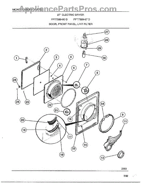 Parts for Frigidaire 7589-80D: Door / Front Panel / Lint Filter Parts