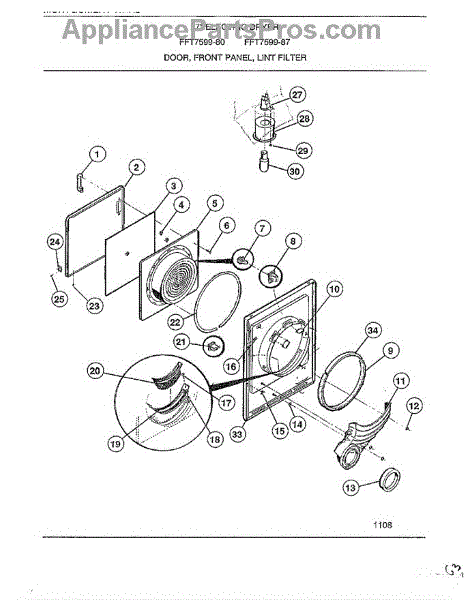 Parts for Frigidaire 7599-80: Door, Front Panel, Lint Filter Parts