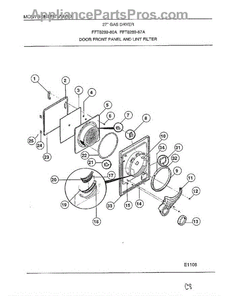 Parts for Frigidaire 8289-80A: Door Front Panel / Lint Filter Parts