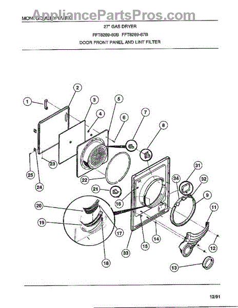 Parts for Frigidaire 8289-87B: Door Front Panel And Lint Filter Parts