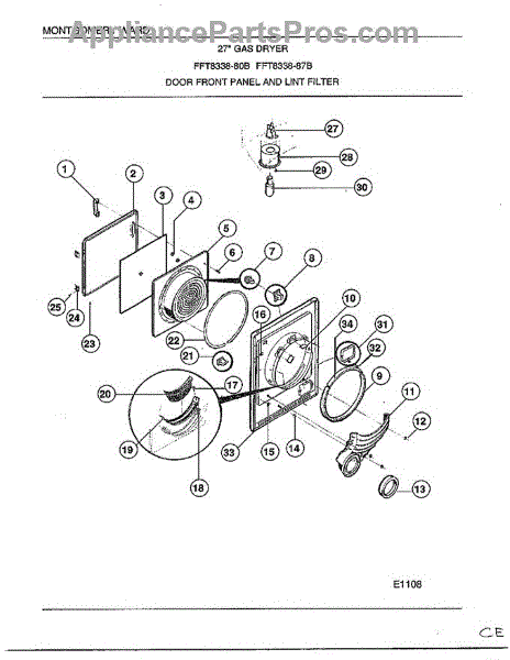 Parts for Frigidaire 8338B: Door Front Panel And Lint Filter Parts
