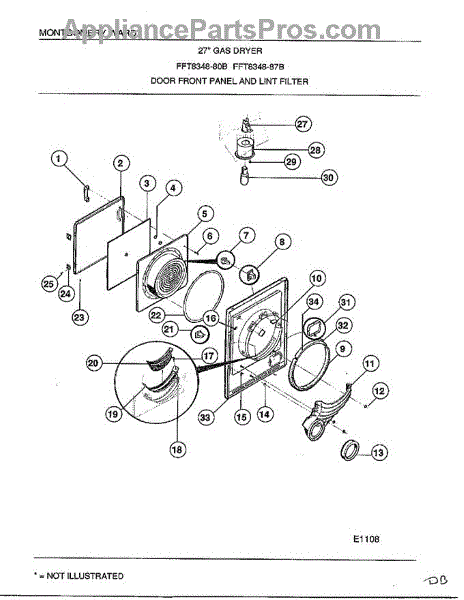 Parts for Frigidaire 8348B: Door Front Panel And Lint Filter Parts