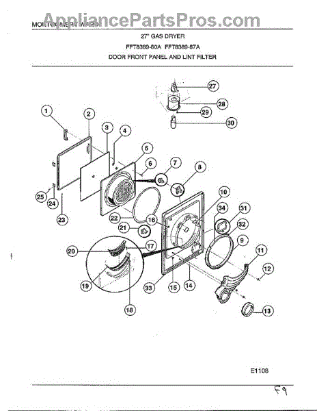 Parts for Frigidaire 8389-87A: Door Front Panel And Lint Filter Parts