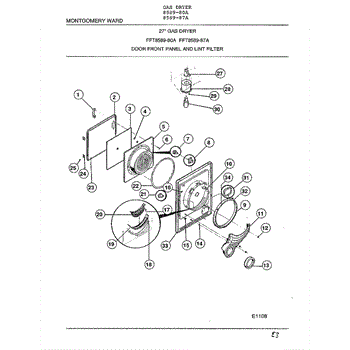 Parts for Frigidaire 8589-87A: Door Front Panel And Lint Filter Parts