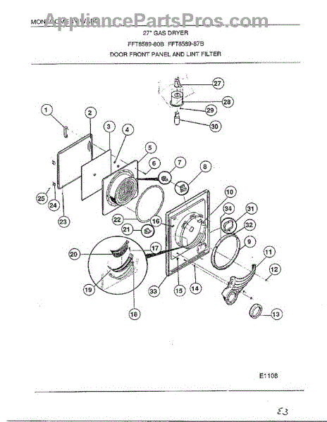 Parts for Frigidaire 8589-87B: Door Front Panel / Lint Filter Parts