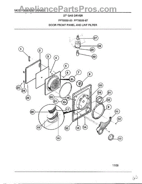 Parts for Frigidaire 8599-80: Door Front Panel And Lint Filter Parts