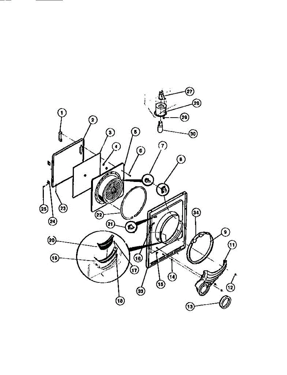 Door spacer that maintains proper clearance between the dryer door and cabinet. Replace if cracked, broken, or missing to ensure correct door alignment.