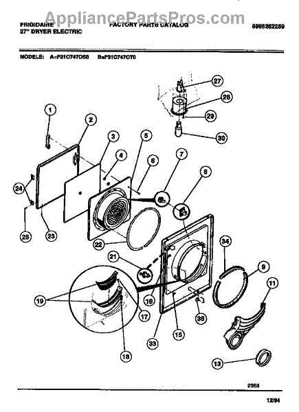 Parts for Frigidaire F31C747CT0: 03 - Door, Front Panel, Lint Filter Parts