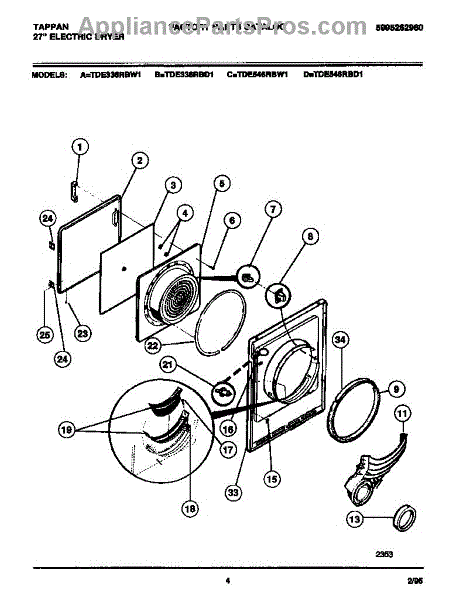 Parts for Frigidaire TDE546RBD1: 03 - Door, Front Panel, Lint Filter Parts