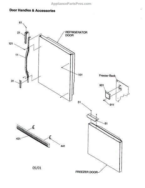 Parts for Amana DRB2101AC-PDRB2101AC0: Door Handles And Accessories Parts