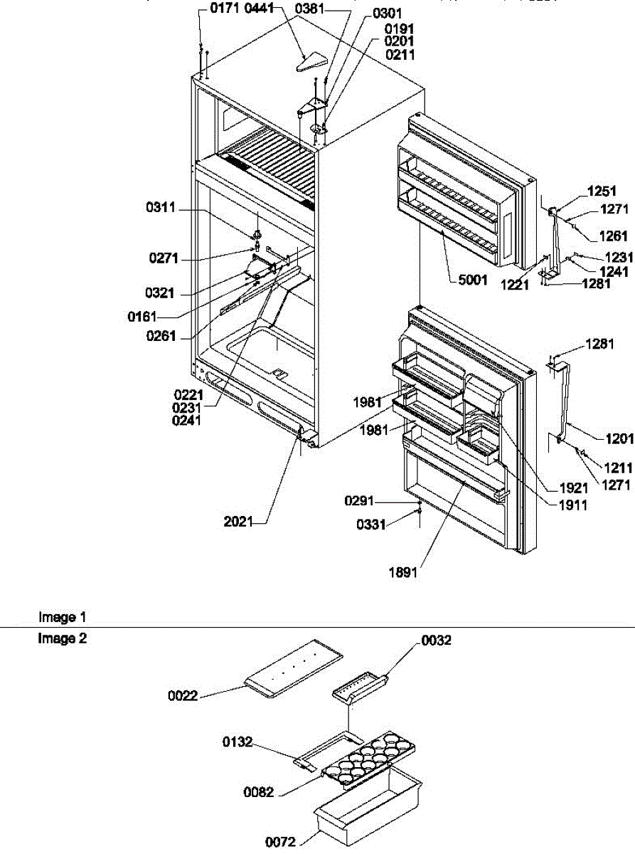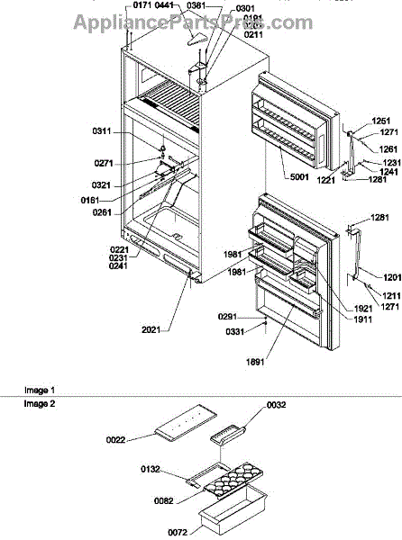 Parts for Amana THI18TE-P1310701WE: Door, Hinges And Accessories Parts