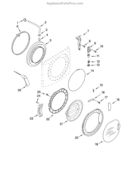 The Front Bellow Tub Seal is an OEM replacement part for Whirlpool washing machines. Located behind the washer door opening, it forms a barrier sealing in moisture. The flexible seal compresses tightly against the tub during rotation to prevent water escape through potential seam gaps. Causes relate to years of compression from tub movement stressing the material. Mineral buildup prohibiting a flush seal also diminishes its functionality over time. Symptoms of failure include: