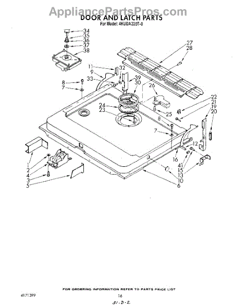 Parts for Whirlpool 4KUDA220T0: 13 - Door And Latch Parts