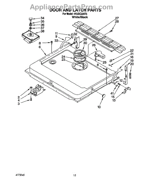 This factory screw secures appliance components to their mounting points. Replace missing, worn, or stripped hardware to restore a tight fit, proper alignment, and quieter operation across the affected assembly.