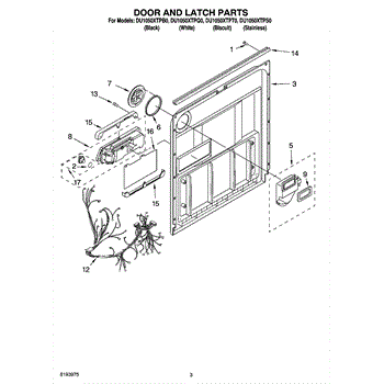 Parts for Whirlpool DU1050XTPT0: 03 - Door And Latch Parts