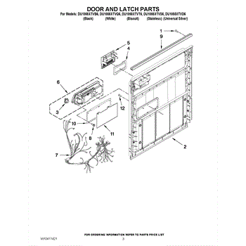 Parts for Whirlpool DU1055XTVB6: 03 - Door And Latch Parts