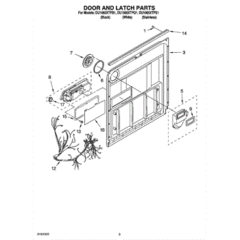 Parts for Whirlpool DU1065XTPS1: 03 - Door And Latch Parts