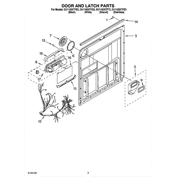 Parts for Whirlpool DU1100XTPT3: 03 - Door And Latch Parts