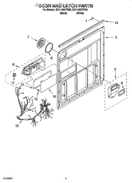 Parts for Whirlpool DU1148XTPB9: 03 - Door And Latch Parts