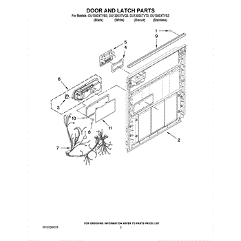 Parts for Whirlpool DU1300XTVB3: 03 - Door And Latch Parts
