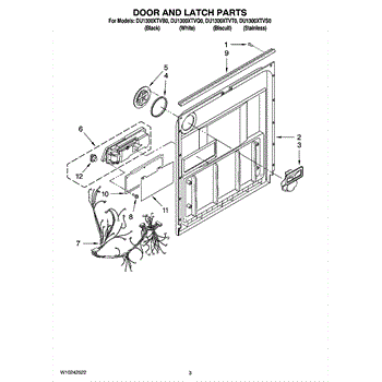 Parts for Whirlpool DU1300XTVT0: 03 - Door And Latch Parts