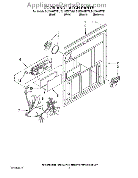 Parts for Whirlpool DU1300XTVT1: 03 - Door And Latch Parts