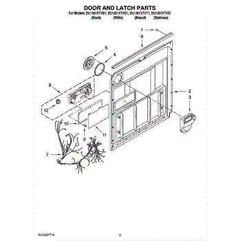 Parts for Whirlpool DU1301XTVS1: 03 - Door And Latch Parts
