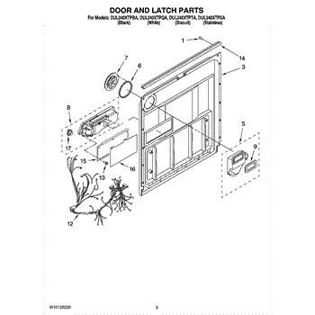 Parts for Whirlpool DUL240XTPBA: 03 - Door And Latch Parts