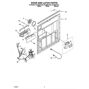 Parts for Whirlpool DUL300XTLT3: 03 - Door And Latch Parts