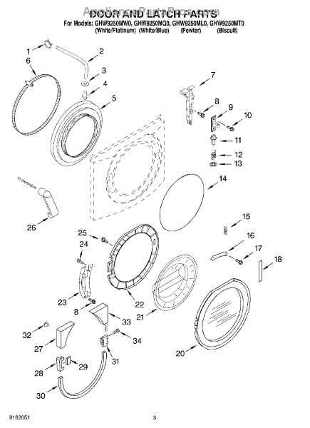 Parts for Whirlpool GHW9250MW0: 02 - Door And Latch Parts