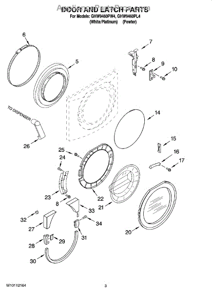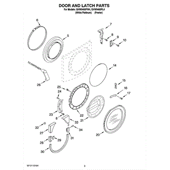 Parts for Whirlpool GHW9460PW4: 02 - Door And Latch Parts