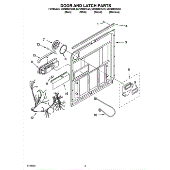 Parts for Whirlpool GU1200XTLB3: 03 - Door And Latch Parts