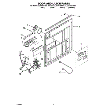 Parts for Whirlpool GU1200XTLS2: 03 - Door And Latch Parts