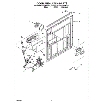 Parts for Whirlpool GU2200XTSB1: 03 - Door And Latch Parts