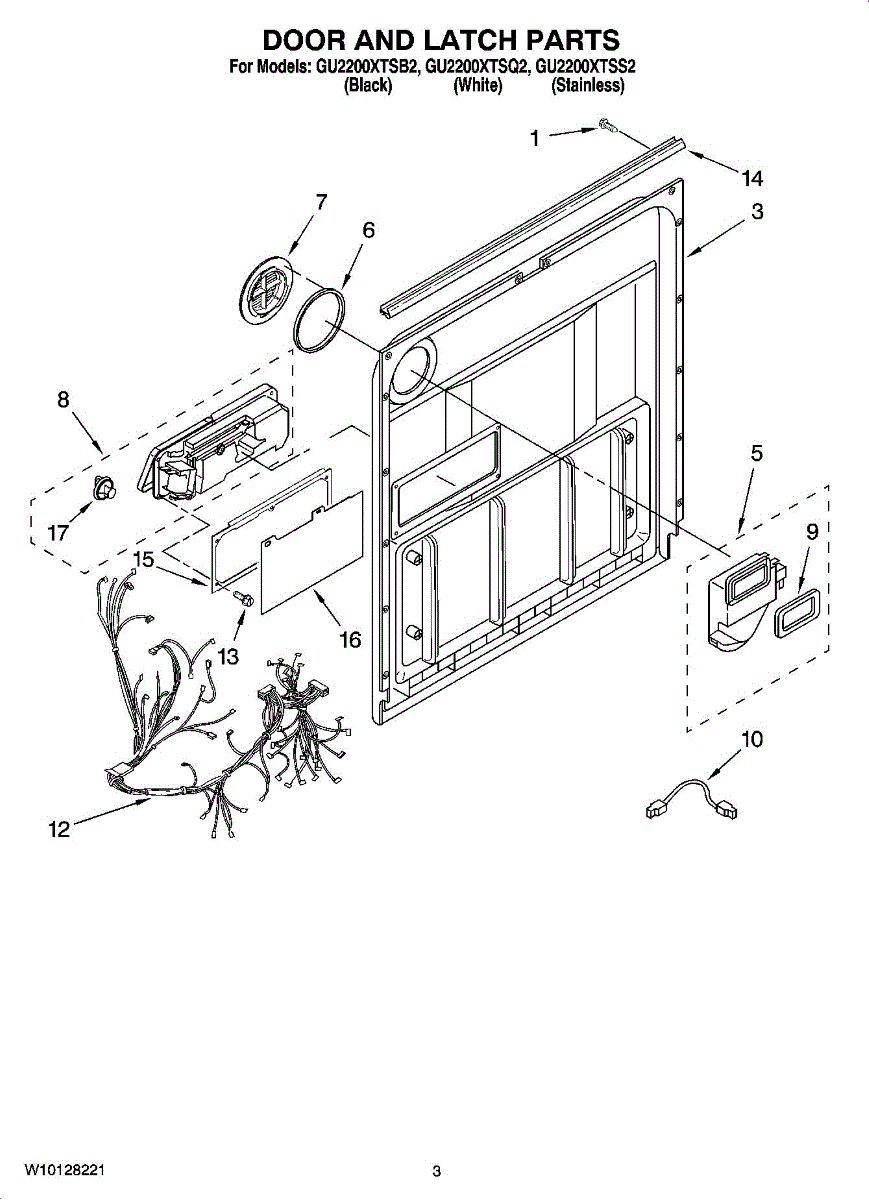 Seals the front edge of your dishwasher door to contain water and steam. Replace when you notice leaks or drips at the door opening. Confirm fit.