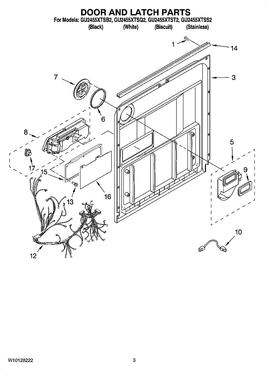 Seals the front edge of your dishwasher door to contain water and steam. Replace when you notice leaks or drips at the door opening. Confirm fit.