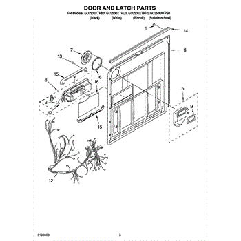 Parts for Whirlpool GU2500XTPT0: 03 - Door And Latch Parts