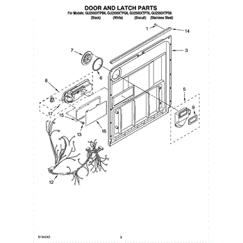 Parts for Whirlpool GU2500XTPT6: 03 - Door And Latch Parts