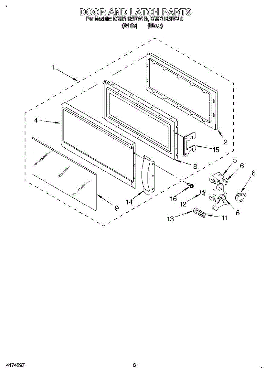Parts for Kitchenaid KCMG125DBL0: 03 - Door And Latch Parts