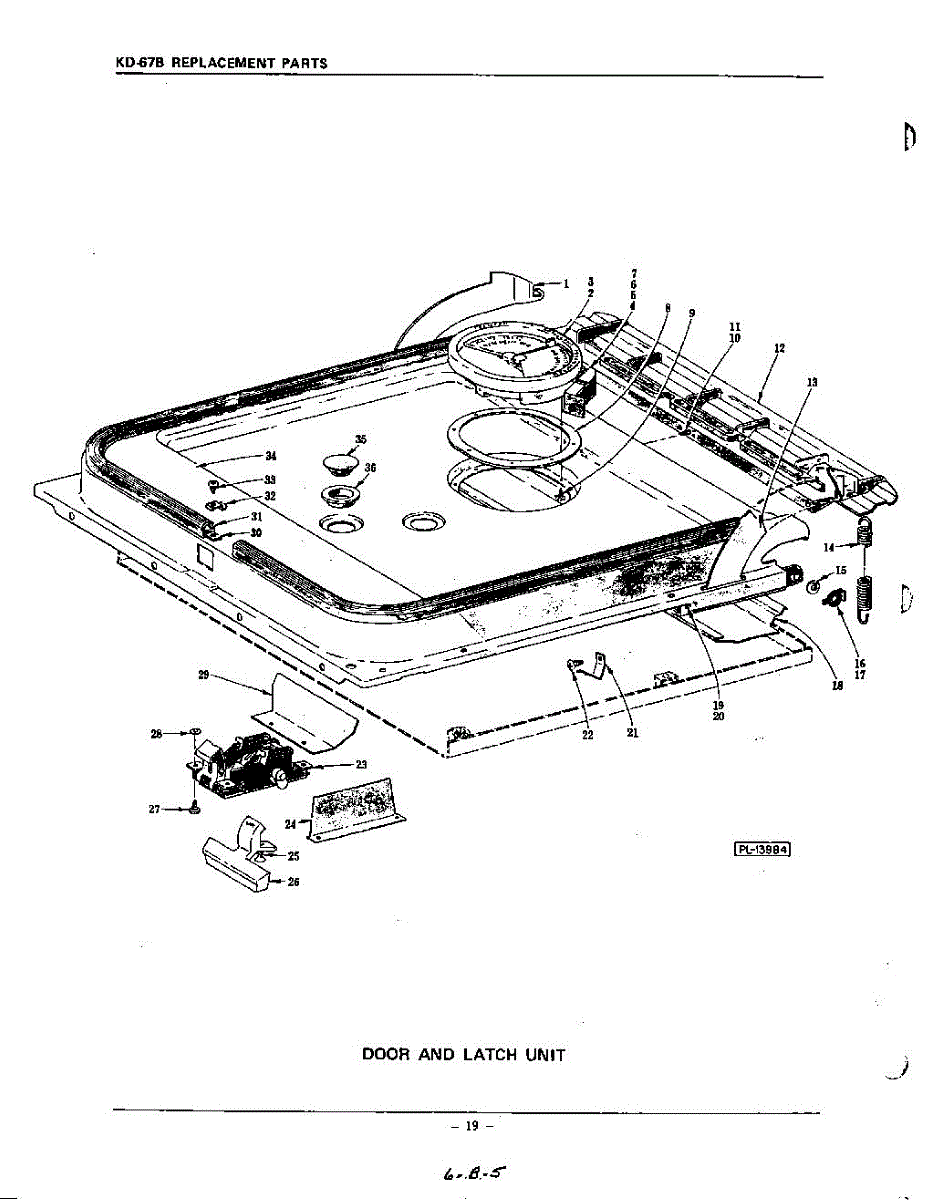 Parts for Kitchenaid KDR67B: 19 - Door And Latch Parts