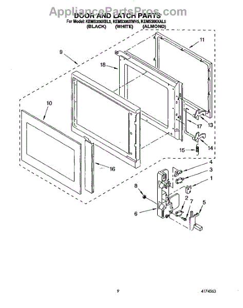 Parts for Kitchenaid KEMS306XAL5: 06 - Door And Latch Parts